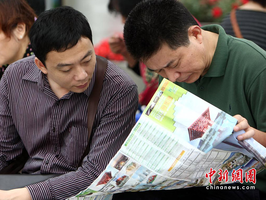 截至6月5日19點30分,上海世博會累計參觀者已超過1000萬人次。據悉,上海世博會的規劃用地為5.28平方公里,約242個國家和國際組織參展分布在浦東和浦西兩大區域。要想在這么大的地方找到自己想去的地方,那么世博地圖就是必須的裝備。圖為上海世博園內游客正在地圖上尋找自己要去的地方。中新社記者 杜洋 攝