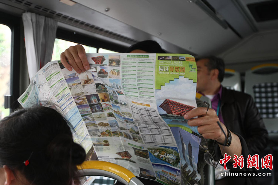 截至6月5日19點30分,上海世博會累計參觀者已超過1000萬人次。據悉,上海世博會的規劃用地為5.28平方公里,約242個國家和國際組織參展分布在浦東和浦西兩大區域。要想在這么大的地方找到自己想去的地方,那么世博地圖就是必須的裝備。圖為上海世博園內游客正在地圖上尋找自己要去的地方。中新社記者 杜洋 攝