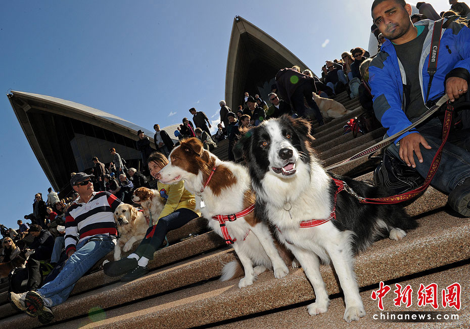6月5日,澳大利亞悉尼歌劇院外舉辦了全球首場狗能聽懂的音樂會,約有1000人帶著數百只愛犬在劇院前庭和階梯落坐,聆聽“狗的音樂”,整場音樂會全長20分鐘。圖片來源:中國新聞網