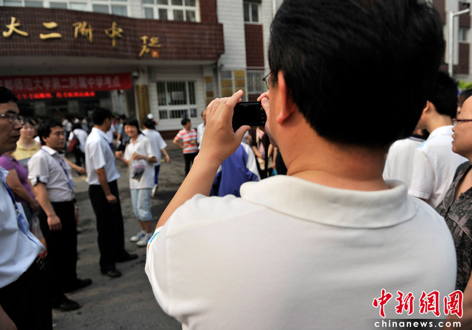 2010年全國高考6月7日日拉開大幕,957萬考生走進考場。由于報名人數減少,而招生計劃增加,教育部預計今年全國高考平均錄取率將會增加近7%。圖為首都師范大學第二附屬中學考點。中新網記者 金碩 攝