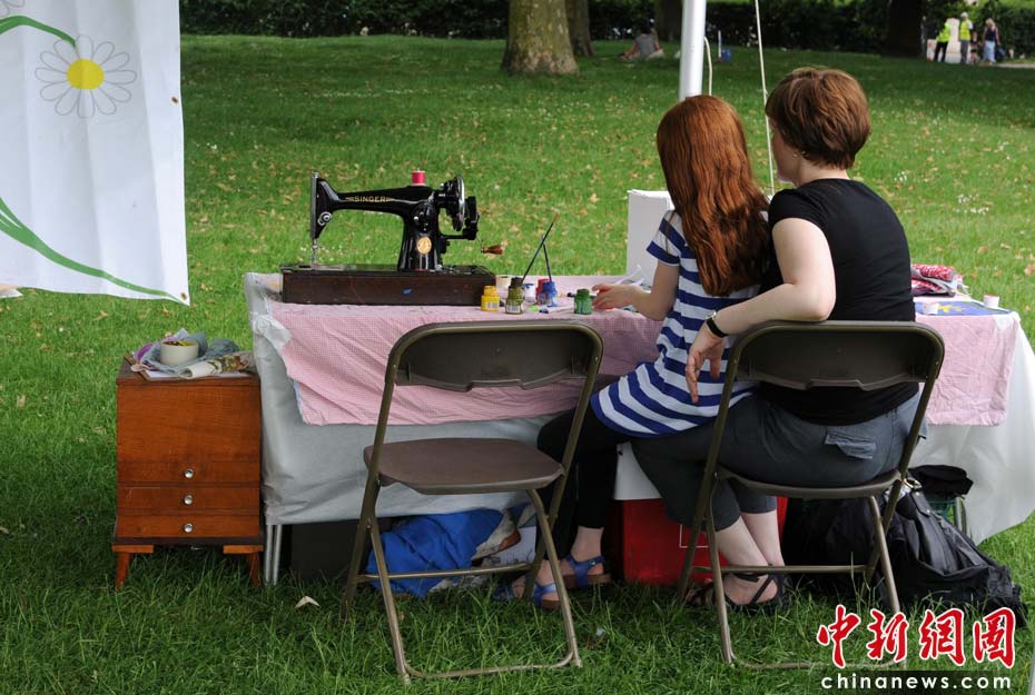 當(dāng)?shù)貢r間2010年6月6日,英國倫敦舉行卡姆登綠色市集(Camden Green Fair),這是英國倫敦每年環(huán)保領(lǐng)域的“重頭戲”。本屆市集的主旨是要喚起大眾對環(huán)境問題的關(guān)注,選擇更加可持續(xù)發(fā)展的生活方式。據(jù)活動主辦方預(yù)計,本屆市集將吸引來自英國各地和世界各國的2萬多人參加。圖為一對母女在做手工。桌子上的老式縫紉機(jī)讓人有重回舊時光的感覺。Fiona/攝 Fiona 馬小剛/文