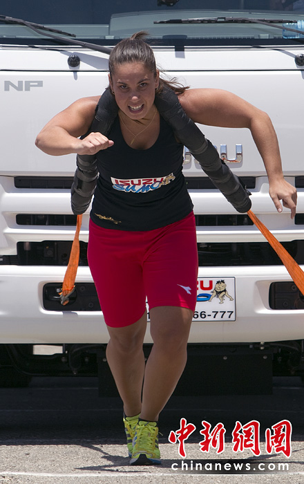 6月8日,以色列在海濱城市特拉維夫舉行了拉卡車大賽。比賽要求將一臺7.5噸的卡車拉到30米以外,用時最短者為勝者。該項賽事不但吸引了世界上眾多男性大力士,更有許多女性大力士出戰。圖片來源:中國新聞網