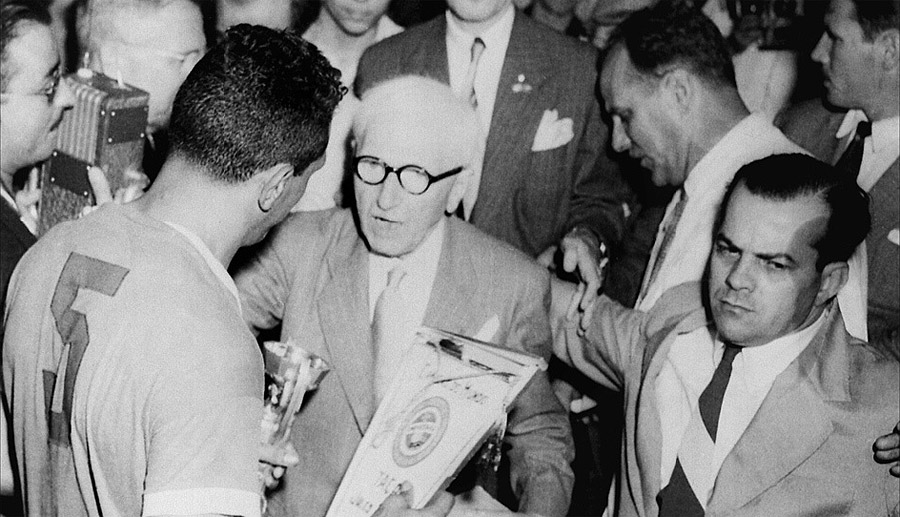 在與1938年法國世界杯時隔12年后,世界杯在里約熱內(nèi)盧的馬拉卡納體育場和巴西其他城市再度舉行。世界杯在新的時代重新獲得新生。戰(zhàn)后國際足聯(lián)第一次大會于1946年7月25日在盧森堡舉行,國際足聯(lián)雷米特先生在戰(zhàn)爭期間為使足球精神不滅而鞠躬盡瘁。為了向他表示敬意,國際足聯(lián)世界杯被命名為“雷米特杯”,英國重新返回足球大家庭,巴西因在1938年世界杯上表現(xiàn)出色,從而獲得主辦權(quán)。