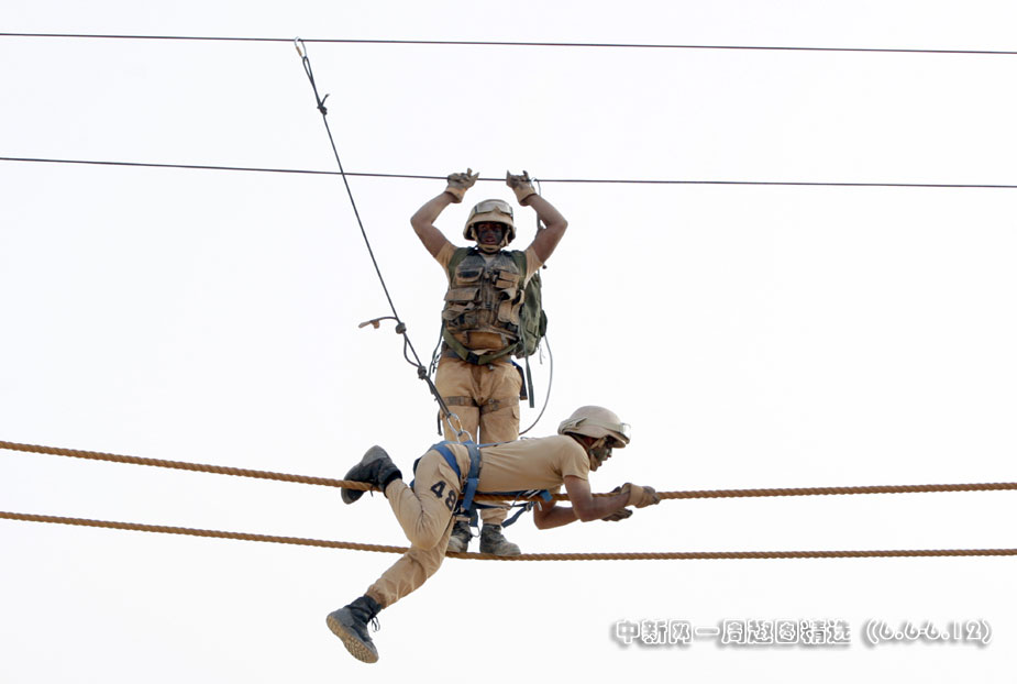 當地時間6月9日,在沙特阿拉伯的利雅得,沙特特種兵學員在畢業表演中展示所學技能。圖片來源:中國新聞網>>點擊觀看詳細內容