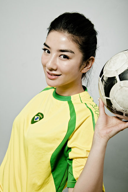 近日,黃奕身穿巴西隊球衣拍攝了一組世界杯足球寫真,為南非世界杯助威喝彩。