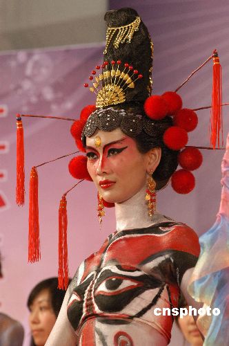 2007年11月3日,第九屆江蘇省美容美甲大賽在南京國際展覽中心舉行,參賽選手們用中國紅、京劇服飾等裝扮模特,使自己的作品在傳統文化和現代元素中相得益彰,成為大賽上十分靚麗的景致。中新社發 阿董 攝