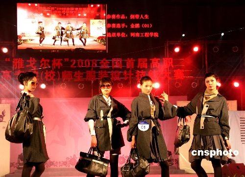 12月11日晚,中國高職院校服裝設(shè)計技能大賽在揚州舉行。共有來自江蘇、安徽、河北、江西、湖北、廣西、北京、重慶、新疆、內(nèi)蒙古等10多個省市自治區(qū)的53所高職高專院校設(shè)計作品911件,經(jīng)專家組初評,有64個系列作品入圍決賽,最終評選出2個金獎、12個銀獎、24個銅獎和最佳效果圖獎、最佳工藝獎等6個單項獎。中新社發(fā) 崔佳明 攝