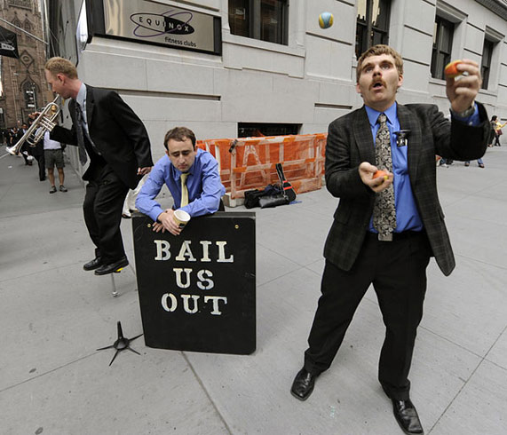 經濟及科技類新聞單幅銅獎照片:《昔日白領街頭賣藝》
