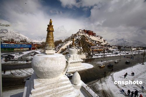 圖為雪后雄偉壯麗的布達拉宮。2月19日晚至20日中午,西藏拉薩下起了2008年春節后的首場大雪。中新社發 那勇順 攝