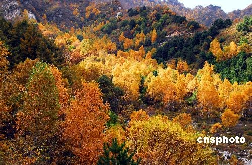 世界地質公園白石山雄居八百里太行山最北端,最高峰海拔2096米,地貌奇特,植被茂密,為中國惟一的大理巖峰林景區。每逢秋季,如詩如畫。中新社發 呂子豪 攝