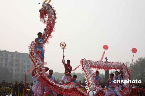 江西師范大學(xué)科技學(xué)院舞龍隊正在比賽。