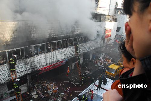 11月20日上午10時(shí)許,安徽蚌埠市區(qū)最大的小商品批發(fā)市場(chǎng)——太平街批發(fā)市場(chǎng)2號(hào)營(yíng)業(yè)大廳發(fā)生火災(zāi),一層大廳2000平方米的近百攤位全部陷入火海中。一個(gè)多小時(shí)后,火勢(shì)又蔓延到二樓倉(cāng)儲(chǔ)區(qū)。截至下午4時(shí),余火仍在撲救中。目前沒(méi)有人員傷亡報(bào)告,經(jīng)營(yíng)戶貨品財(cái)物損失很大。 中新社發(fā) 安徽張建平 攝