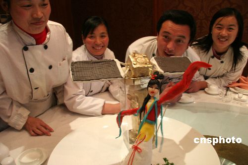 11月27日,江蘇連云港海州石棚山廚師培訓學校的老師臧海麗與該市一家知名酒店的面點師共同合作,創作了“嫦娥一號”面塑作品,以表達對中國嫦娥一號衛星探月活動圓滿成功的喜悅心情。中新社發 進勇 攝