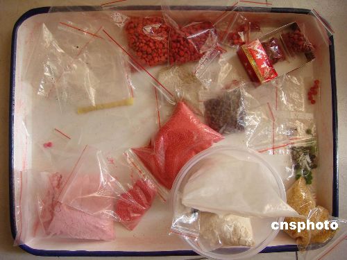 柳州市公安局禁毒支隊(duì)近日一舉破獲一個(gè)特大地下制造新型毒品窩點(diǎn),查獲新型毒品“麻古”(冰毒)成品、半成品兩千多克,可疑毒品原料兩萬(wàn)多克,抓獲涉案人員三名,繳獲一批制造毒品工具。這是今年柳州市警方破獲的最大一起地下制毒案。中新社發(fā) 梁健 攝