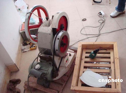 圖為警方繳獲的加工毒品的顆粒機(jī)。
