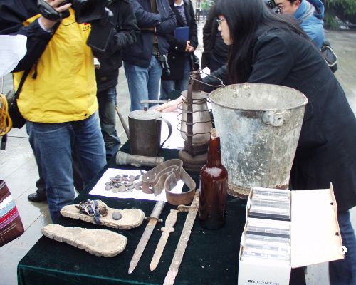 十二月六日,侵華日軍南京大屠殺遇難同胞紀念館獲贈一批重要文物史料,其中有相當一部分與南京大屠殺史直接相關,如十八盒南京大屠殺幸存者原始證言錄音帶,當時中國守軍使用的電筒、帽徽、馬燈,日軍焚尸滅跡用的油桶、日軍軍刀等等。據悉,近三年來該紀念館共收到海內外各界捐贈文物史料共七千九百多件(組),大大豐富了館藏。中新社發 王國安 攝