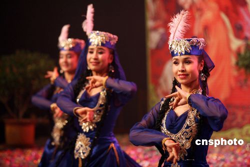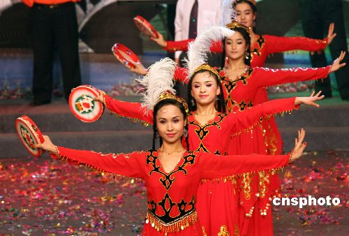 12月11日下午,新疆伊犁哈薩克自治州舉辦了歡慶2007年古爾邦節文藝晚會,演員們通過舞蹈、歌曲、小品等多種形式,展示了穆斯林群眾喜慶歡樂的節日氣氛和團結奮進、昂揚向上的精神風貌。2007年12月20日是穆斯林群眾的傳統節日古爾邦節。中新社發 劉成剛 攝