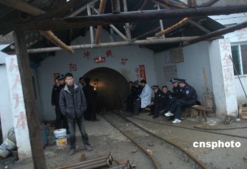 12月11日晚6時20分左右,安徽蕪湖市繁昌縣陽沖鐵礦發(fā)生井下坍塌事故,正在井下作業(yè)的7名礦工被困井下100百米左右,生死不明。事故發(fā)生后,蕪湖市政府立即啟動應(yīng)急救援預(yù)案,成立了事故搶險救援指揮部,全力組織救援工作。由于被困礦工離井口太深,給救援帶來一定的難度,當(dāng)晚,省安監(jiān)部門調(diào)集銅陵、淮南兩地的礦山救護(hù)大隊救援人員、專家趕到事故現(xiàn)場,組織救援。救援人員在開挖封堵巷道泥土的同時,向井下送風(fēng)。截至發(fā)稿時止,被困礦工仍未救出。中新社發(fā) 芮軍 攝