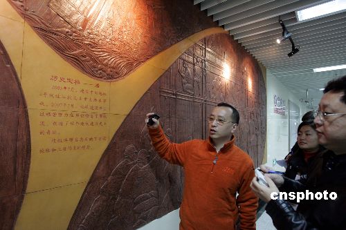 十二月二十三日,上海軌道交通4號線全線貫通進入最后試運營演練,記者在南浦大橋站,看到一幅巨型浮雕,真實描繪了2003年7月,4號線在建過黃浦江段時,發生重大滲水事故,后來地鐵建設者奮力搶修、原位修復的過程。據悉,該重大滲水事故,曾引起海內外媒體廣泛關注。如今,堪稱上海軌道交通“金環”的4號線貫通在即,新浮雕讓參觀者感嘆上海人務實求真。中新社發 潘索菲 攝