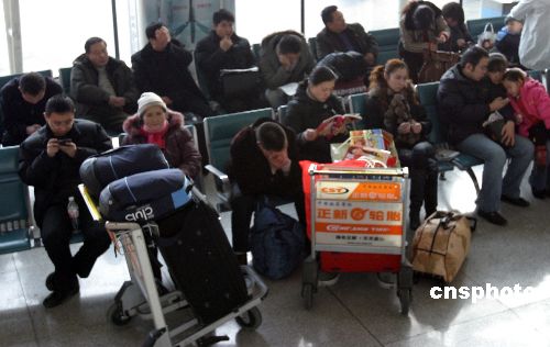 1月2日上午,烏魯木齊國際機(jī)場(chǎng)出現(xiàn)大霧天氣,致使部分航班延誤,數(shù)百名乘客滯留機(jī)場(chǎng)。記者從機(jī)場(chǎng)問訊處獲悉,因?yàn)豸斈君R國際機(jī)場(chǎng)被大霧籠罩,能見度不符合飛機(jī)降落標(biāo)準(zhǔn),成都—烏魯木齊、北京—烏魯木齊等國內(nèi)航班被迫備降敦煌機(jī)場(chǎng),導(dǎo)致從烏魯木齊飛往成都和北京等地的乘客滯留機(jī)場(chǎng)。據(jù)了解,烏魯木齊到庫爾勒、伊寧等地的疆內(nèi)航班沒有受到影響,仍可正常起飛。截至發(fā)稿時(shí),機(jī)場(chǎng)大霧仍未退去,乘客們?nèi)栽诘却鞖夂棉D(zhuǎn)。中新社發(fā) 李雄心 攝