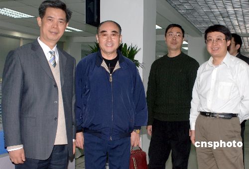 1月7日,乒乓球前世界冠軍莊則棟(左二)做客中國新聞社時,在中新社社長郭招金(左一)等人陪同下參觀中國新聞網。中新社發 鄒憲 攝