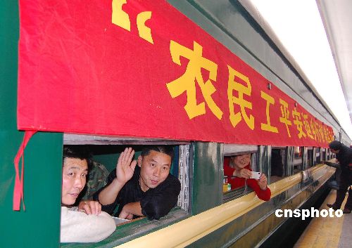 圖:廣州發出今春首趟珠三角農民工返鄉專列