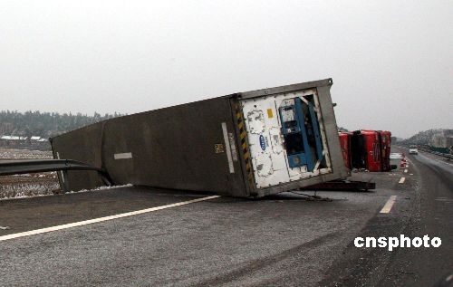 一場(chǎng)五十年罕見(jiàn)的陰雨雪冰凍災(zāi)害天氣已導(dǎo)致江西省連日發(fā)生了多起車禍?zhǔn)鹿剩?月23日以來(lái)發(fā)生了三起重大交通事故,導(dǎo)致十三人死亡。圖為31日江西省梨溫高速公路上兩輛大型客車相撞側(cè)翻。中新社發(fā) 吳慶才 攝
