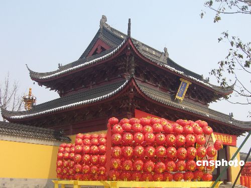 2月9日,6組造型別致的“巨型鼓燈”亮相蘇州市重元寺。每一組“巨型鼓燈”均由130只紅燈籠組成,給新春佳節增添了濃濃的喜氣。中新社發 李俊鋒 攝