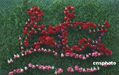 圖:數千康乃馨祝福北京奧運