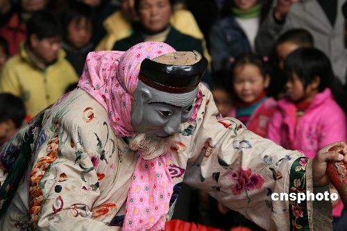 2月20日,江西宜春萬載潭埠鎮(zhèn)池溪村村民跳起儺舞鬧元宵,村文化中心人聲鼎沸,鑼鼓喧天,香煙裊裊,爆竹聲聲。人們以娛樂形式向儺神祈求國泰民安、人壽年豐。正月跳儺的風俗在萬載源遠流長。萬載儺舞,始于元末明初,似深山璞玉,如峽谷幽蘭,習俗盛行,古樸祥和,儀態(tài)萬千,被譽為“中國古代舞蹈活化石”,跳儺者頭戴面具,身著古裝,手執(zhí)各種兵器,在民間打擊樂的伴奏下,手舞足蹈,其表現(xiàn)手法嚴肅而詼諧。中新社發(fā) 彭小榕 攝
