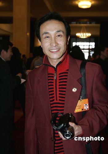 三月三日下午,全國政協十一屆一次會議在北京人民大會堂隆重開幕,著名笑星鞏漢林與會。中新社發 潘索菲 攝