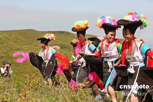 5月11日,是貴陽市苗族同胞農歷“四月八”的傳統節日。貴陽市數千苗族同胞身著節日盛裝,聚集在貴陽市花溪區高坡鄉云頂村草場載歌載舞,歡慶一年一度的苗族節日。小伙子們吹起歡快的蘆笙,姑娘們跳起苗族的花綢舞,盡情的對歌談心,祈求今年風調雨順,五谷豐登。中新社發 彭年 攝