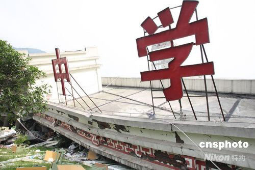 圖為地震中倒塌的汶川中學。中新社發 張雷 攝