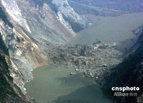 圖:汶川災(zāi)區(qū)多處塌方形成危險(xiǎn)的堰塞湖