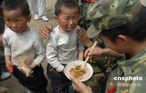 圖:四川地震中哭泣的雙胞胎兒童