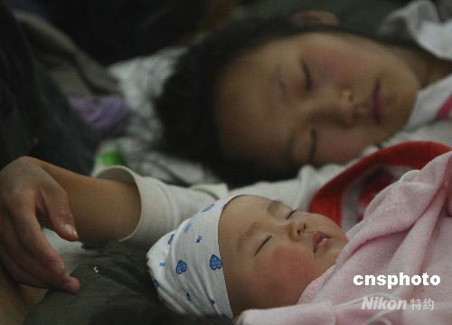 5月22日凌晨1時,四川汶川大地震重災區民眾約2萬多人在綿陽市九州體育館休息。中新社發 趙振清 攝