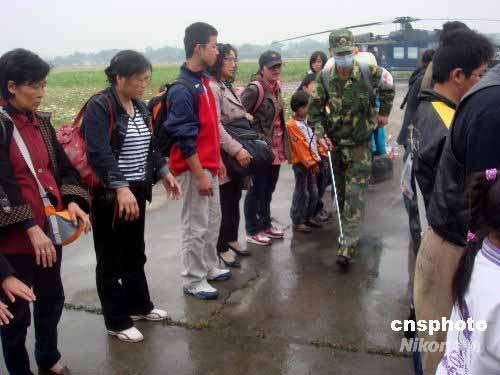 五月二十二日是汶川大地震第十一天,從地震災(zāi)區(qū)空運(yùn)到成都避難的民眾都必須進(jìn)行消毒處理。中新社發(fā) 賈國(guó)榮 攝