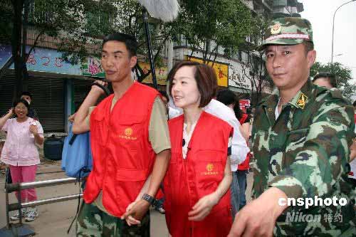 圖:鳳凰衛(wèi)視主持人陳魯豫深入災(zāi)區(qū)采訪