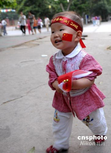 5月28日,一名幼童爭做“圣火護跑手”。中新社發 廖攀 攝