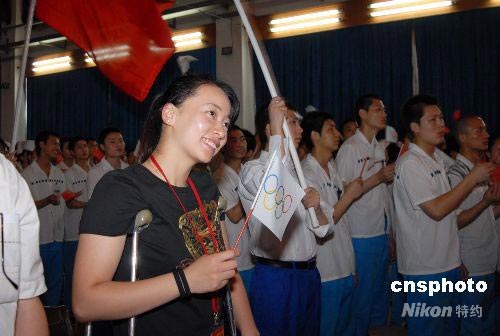 6月19日,殘疾少女、奧運火炬手金晶來到上海市未成年犯管教所,與“失足少年”暢談傳遞奧運火炬心得,她希望奧運精神能使“大墻內的少年們”得到靈魂的洗禮。中新社發 張亨偉 攝