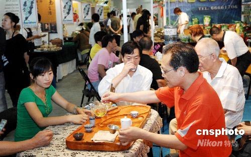 7月3日,為期4天以“綠色、健康、茶文化”為主題的2008大連第四屆國際茶博會暨世界華僑華人以茶會友大會在大連星海會展中心開幕。本屆茶博會,共設(shè)展位200余個。展會期間除舉辦茶葉、茶具壺、茶藝賽外,還將舉辦“東北暨環(huán)渤海地區(qū)茶博覽第二次峰會”、“以茶會友”文藝演出、茶健康知識講座、茶葉推廣會、現(xiàn)場炒茶表演等十大活動。中新社發(fā) 劉德斌 攝