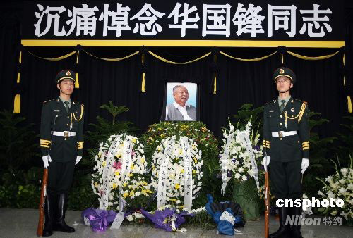 8月22日上午,各界人士到北京一家醫(yī)院開設(shè)的靈堂吊唁剛剛?cè)ナ赖脑泄差I(lǐng)導(dǎo)人華國鋒。靈堂正中安放著華國鋒的遺像,遺像下是華國鋒的親屬及生前身邊工作人員敬獻的花籃。華國鋒因病醫(yī)治無效,于8月20日12時50分在北京逝世,享年87歲。中新社發(fā) 任晨鳴 攝