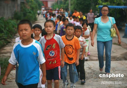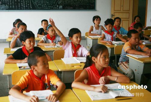 8月25日,來(lái)自四川省汶川縣銀杏鄉(xiāng)銀杏小學(xué)和威州鎮(zhèn)七盤(pán)溝小學(xué)380名學(xué)生在四川丹棱縣正式復(fù)課。兩所學(xué)校的師生將在當(dāng)?shù)乜鞓?lè)生活學(xué)習(xí)3年。地震發(fā)生后,汶川縣銀杏和七盤(pán)溝小學(xué)校園遭到嚴(yán)重毀毀,眉山市華川中等職業(yè)學(xué)校無(wú)償為災(zāi)區(qū)的孩子們提供了4000多平方米的教學(xué)場(chǎng)所。中新社發(fā) 劉忠俊 攝