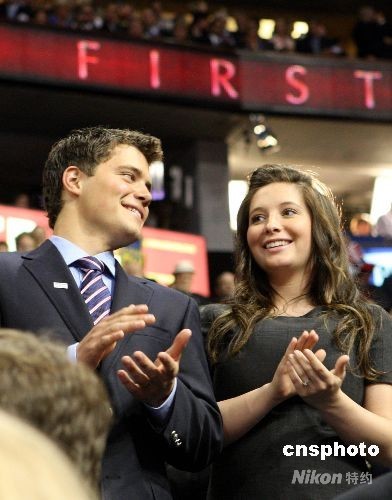 佩林的女兒、懷孕5個月的布里斯托爾和未婚夫,在共和黨大會現場為其鼓氣。