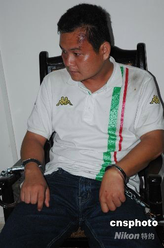 該犯罪團(tuán)伙以海南屯昌縣王義煥、王義軍兄弟為骨干.自今年六月以來,多次頻繁販毒.圖為王義煥在接受審詢中。