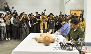 黃淋告訴記者,他表演的目的是將一個(gè)日常化的場(chǎng)景變得陌生,讓觀者產(chǎn)生各種各樣的情緒和思考。兩位老太太則不管那么多,她們來(lái)只是為了各自50元的報(bào)酬。兩人都在黃桷坪大街上擺攤擦皮鞋,身邊的人也常常到美院當(dāng)模特,對(duì)裸露這種事也覺(jué)得平常。“擦他的身體,就像給我孫兒洗澡。”其中一位老太太說(shuō)。 (記者 李藜/文 冉文/攝)