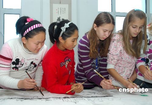 11月2日,來自俄羅斯布拉戈維申斯克市第十四中學的30名學生與黑龍江省黑河市第四中學師生共同舉辦感受中國傳統民族文化活動,以加深俄羅斯青少年對中國傳統民族文化的了解。中新社發 邱齊龍 攝