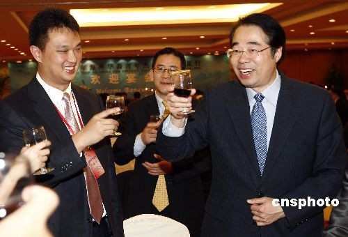 國務(wù)院僑務(wù)辦公室副主任許又聲在歡迎宴會上向華裔青年舉杯祝酒