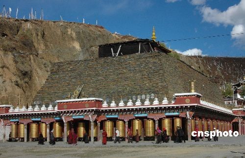 四川康定塔公鄉(xiāng)各日瑪林扎西寺的左側有一座“神山”,當?shù)厝朔Q為“經(jīng)幡山”,中國農(nóng)歷每月十五,當?shù)孛癖娮园l(fā)前往扎西寺朝拜神山進行祈禱。中新社發(fā) 肖龍聯(lián) 攝