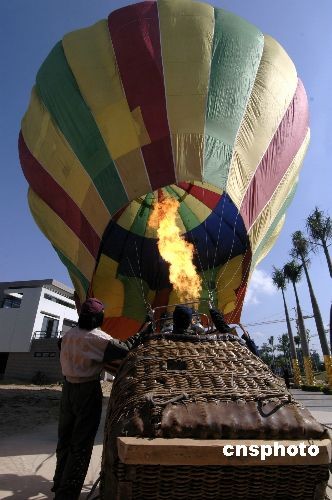 海峽兩岸熱氣球?qū)I(yè)飛行技術(shù)人員在福州準(zhǔn)備試飛熱氣球。